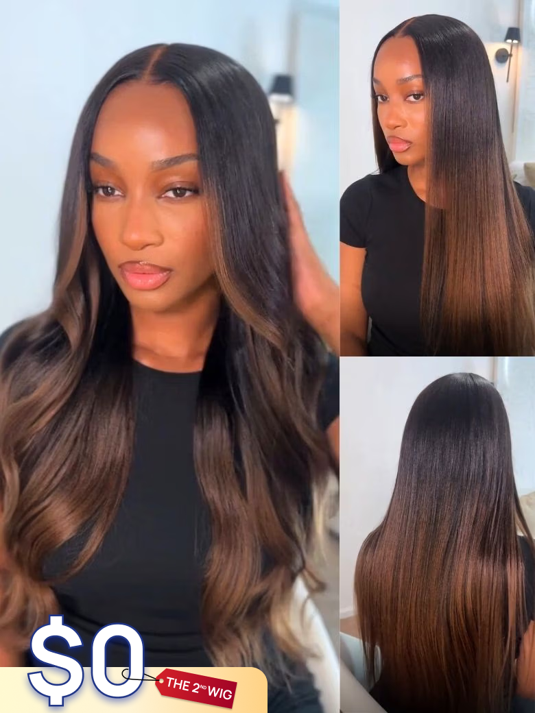 $0 Get Second Wig | Nadula Flash Sale 7*5 Bye Bye Knots Chestnut Brown Ombre Bob Yaki Straight Wig