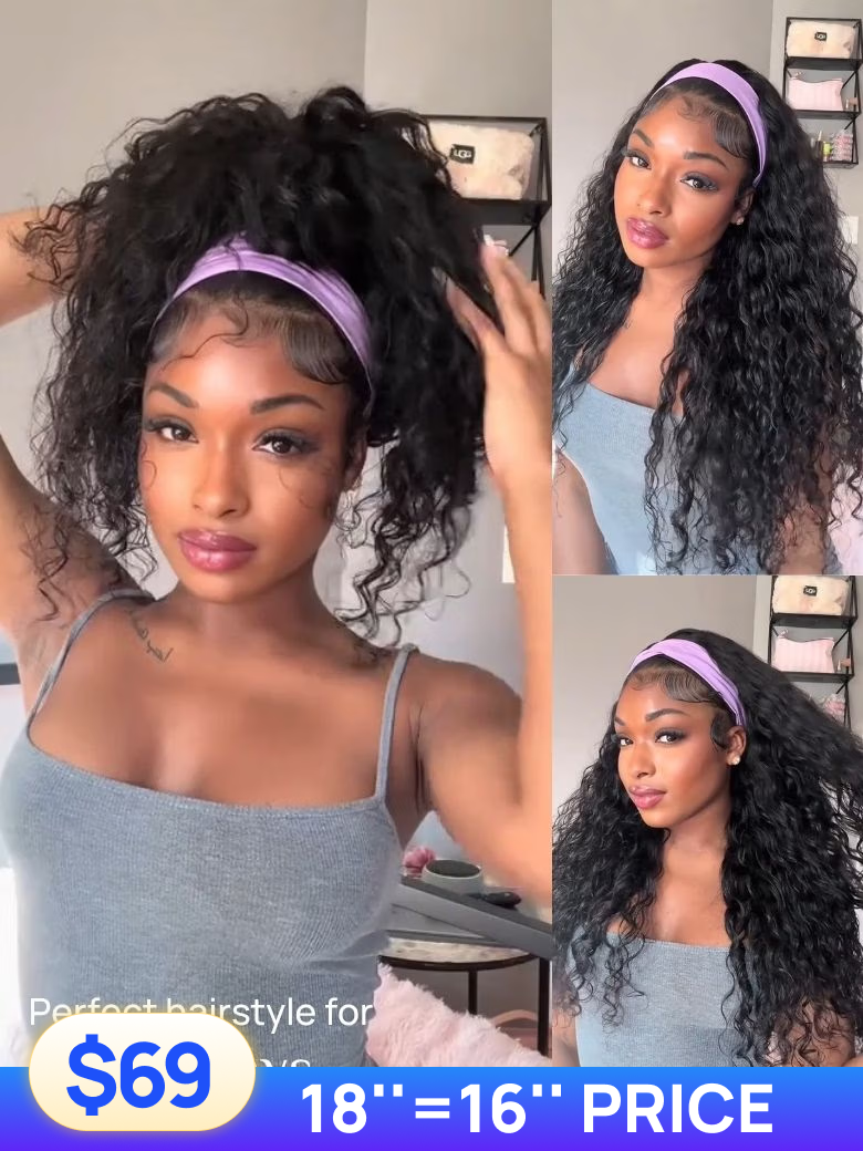 18" & 16" Price $69 | Nadula Flash Sale Water Wave Headband Wigs Put On And Go Human Hair Wigs