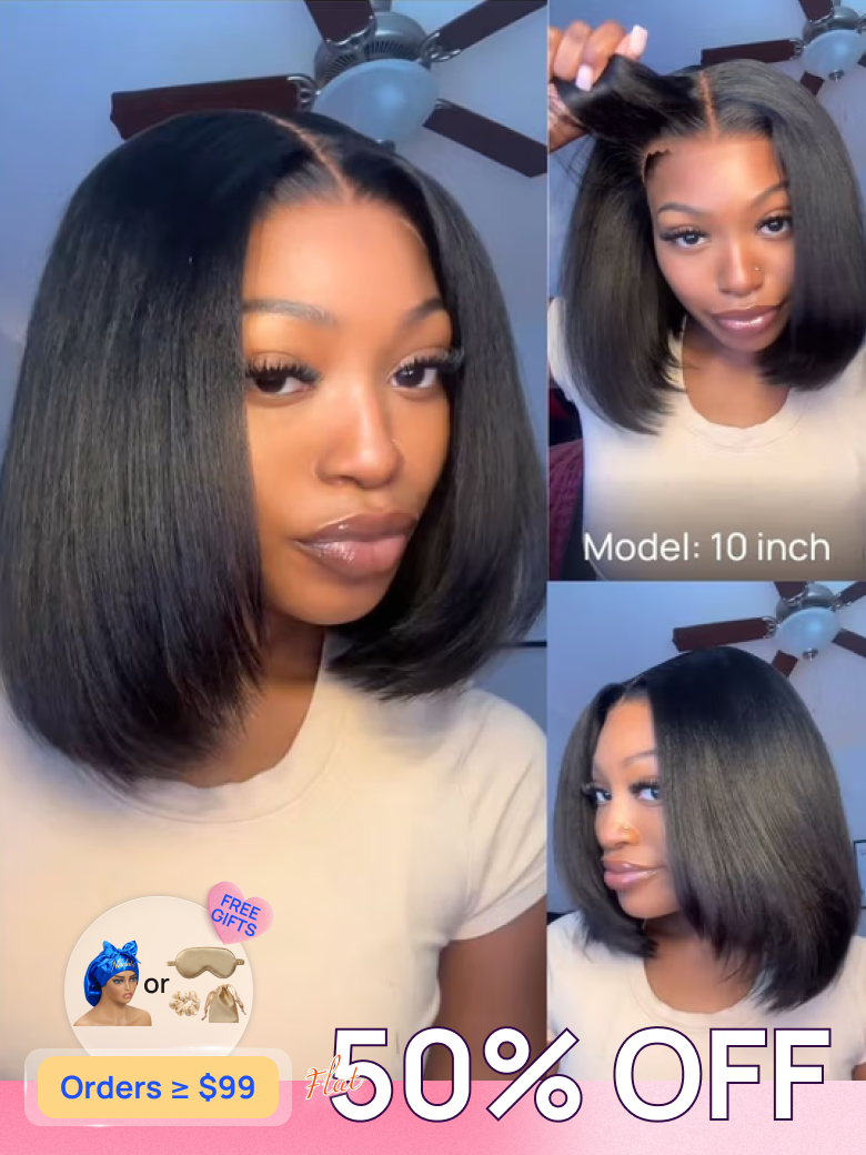 50% OFF | Nadula Flash Sale 7x5 Yaki Bob And Yaki Straight Wigs Put On and Go Human Hair Wig 150%-180% Density