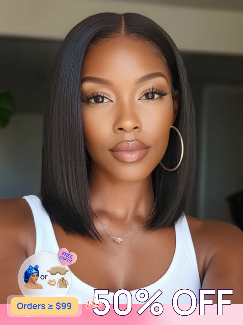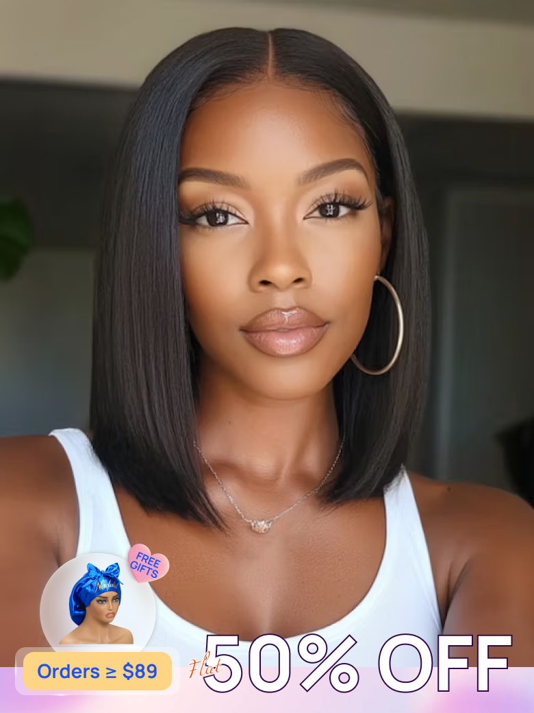 50% OFF | Nadula Flash Sale Yaki Straight And Bob Wig With Bang Put On And Go Wigs 180% Density