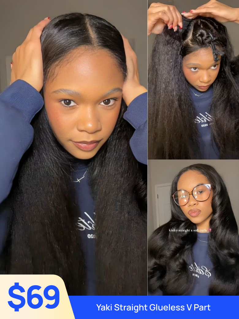 $69| Nadula Flash Sale V Part Yaki Straight Hair Wigs Glueless Human Hair Wig Beginner Friendly