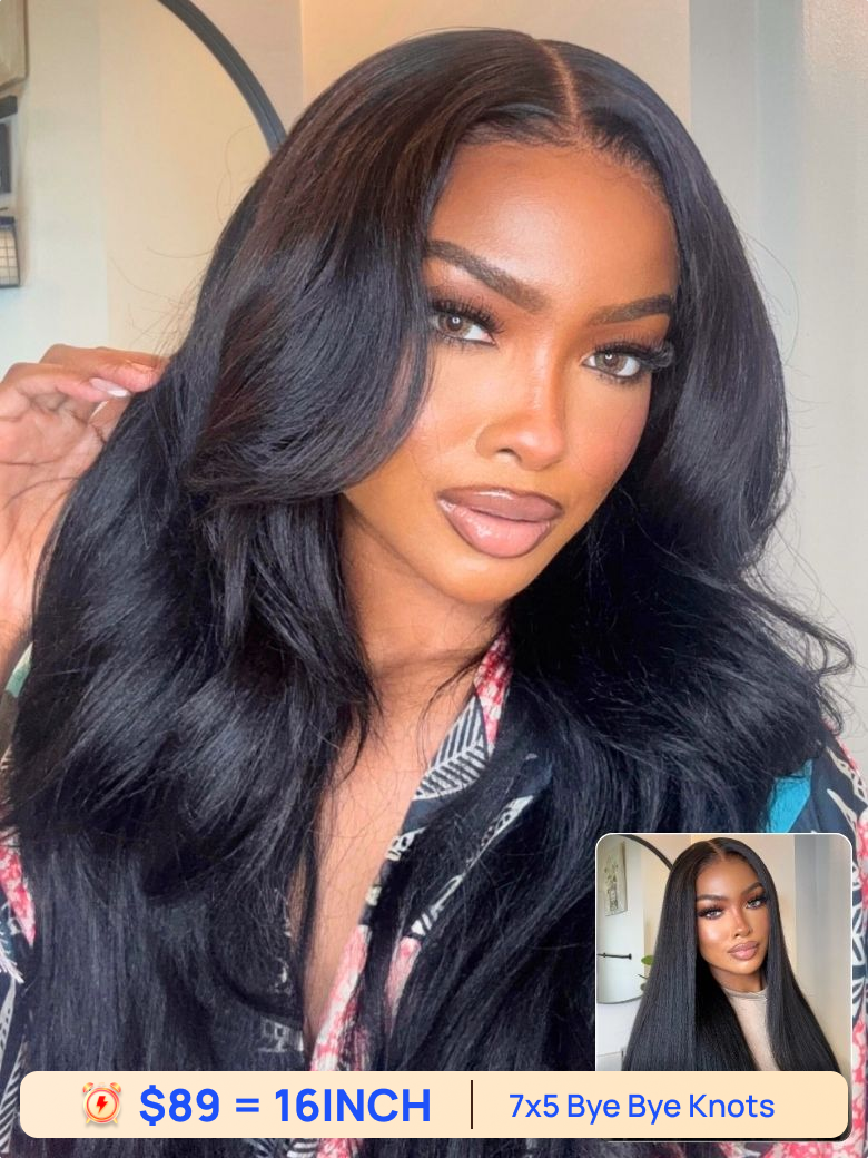 $89=16inch| Nadula Flash Sale 7x5 Yaki Wavy Elastic Drawstring Wig Soft Flip Out Bang Curl Style Human Hair Wigs Brand Day Sale