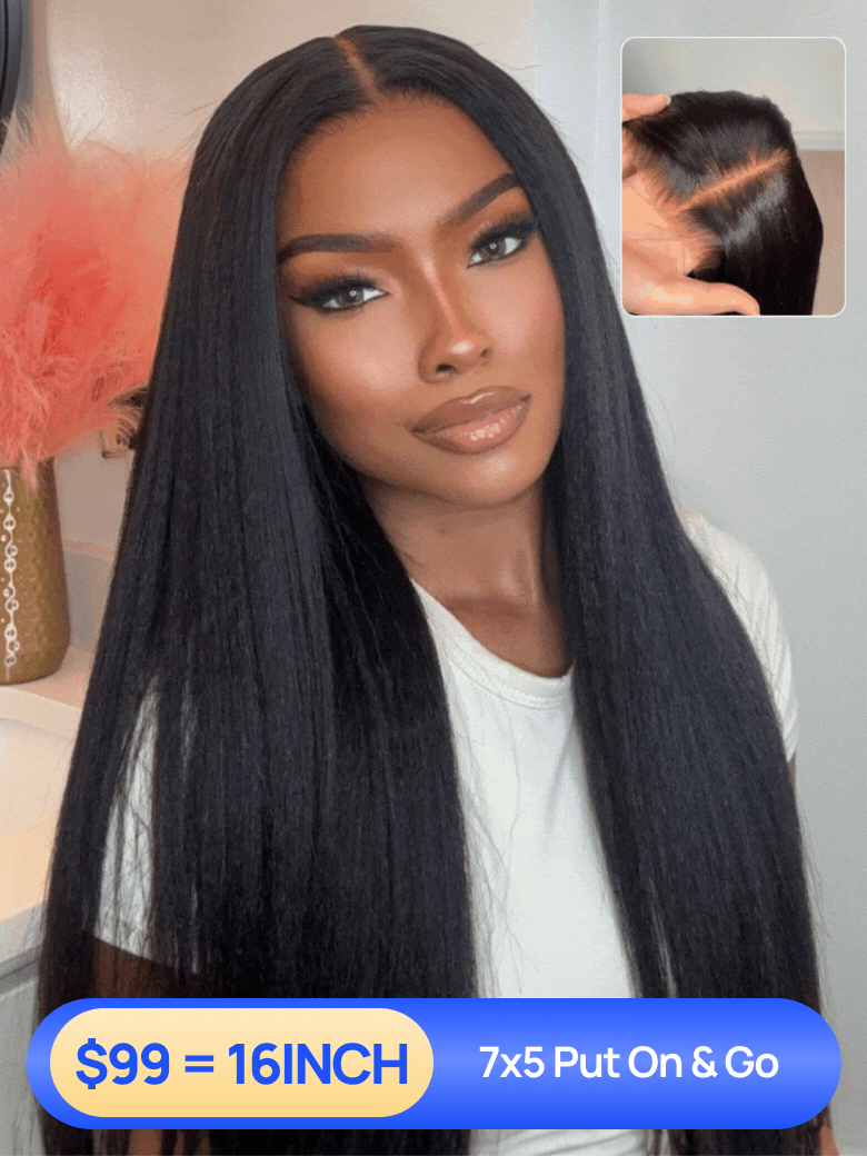 $99=16inch | Nadula Flash Sale 7x5 Pre Cut Lace Yaki Straight Bob Wig Put On and Go Wig With Drawstring
