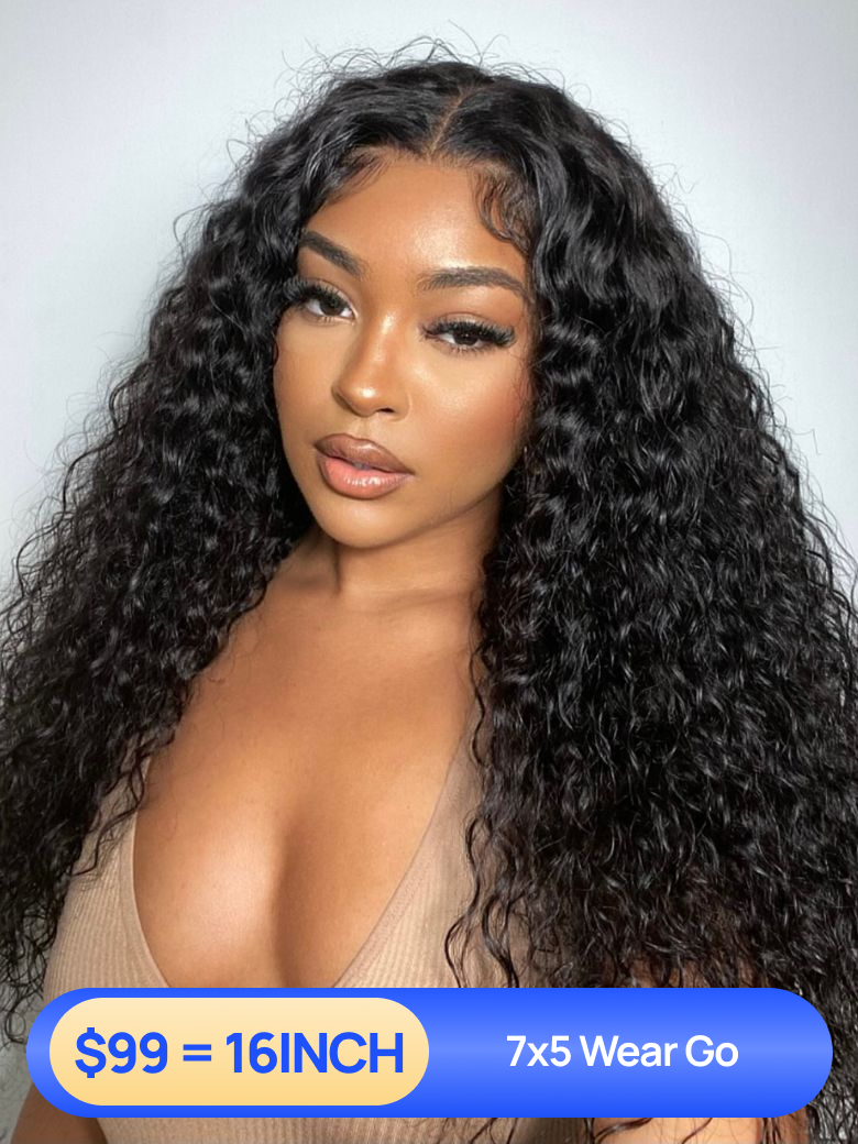 $99=16inch | Nadula Flash Sale Water Wave 7x5 Lace & Half Wig Flip Over 3/4 Half Wig Put On and Go Glueless Lace Wig