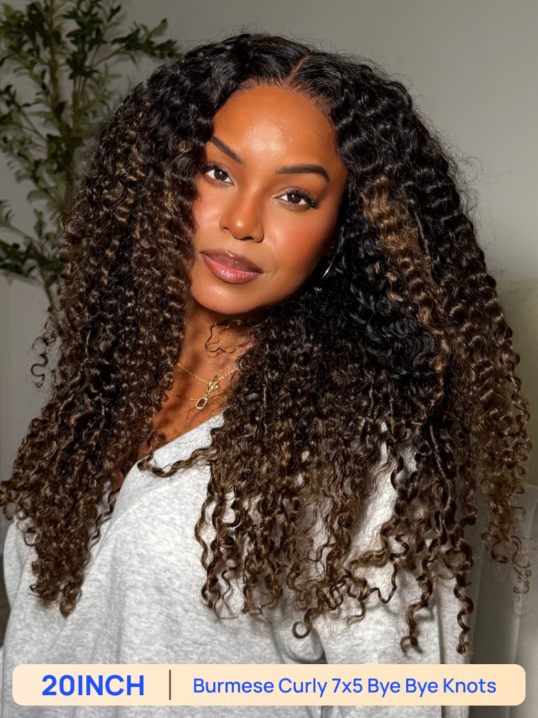 BOGO Free | Nadula 20 inch 7*5 bye bye knots chestnut brown burmese curly wig