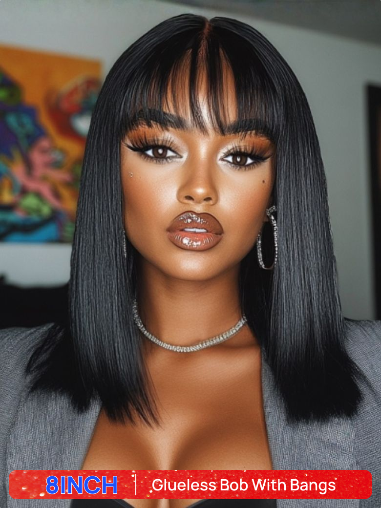 BOGO Free | Nadula 8 Inch Bob Wig With Bangs Classic Cap