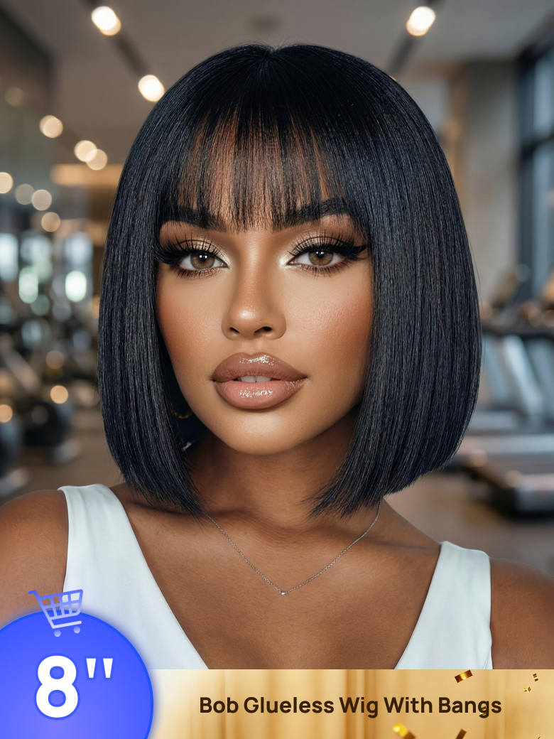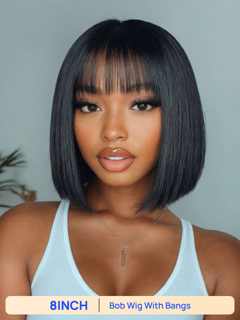 BOGO Free | Nadula 8 Inch Human Hair Bob Wig With Bangs