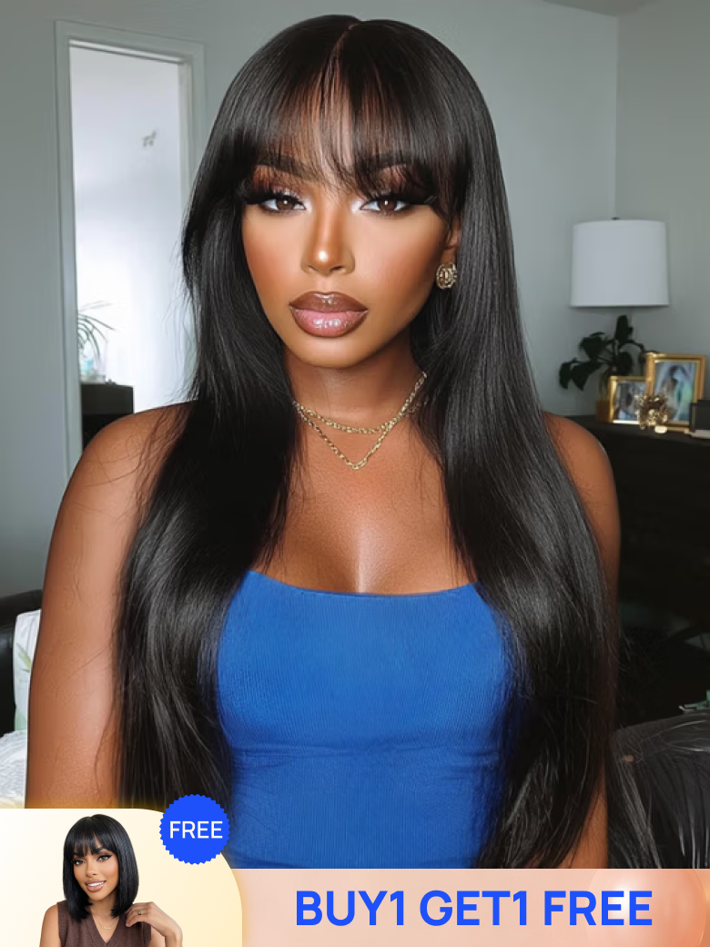 Buy One Get One Free | Nadula Flash Sale Yaki Straight Hair with Bang Put On and Go Beginner Friendly Glueless Human Hair Wigs