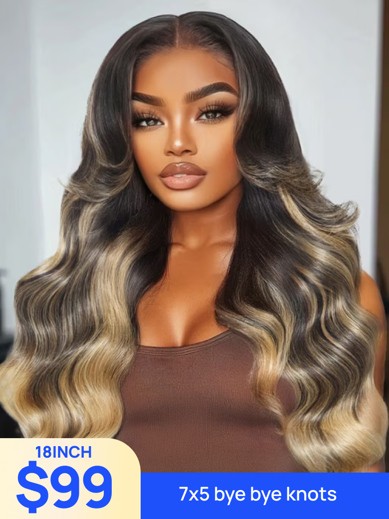 From 18inch | Nadula Flash Sale 7x5 Bye Bye Knots Balayage Highlight Ash Blonde with Dark Roots Wig Put On And Go Human Hair Wigs