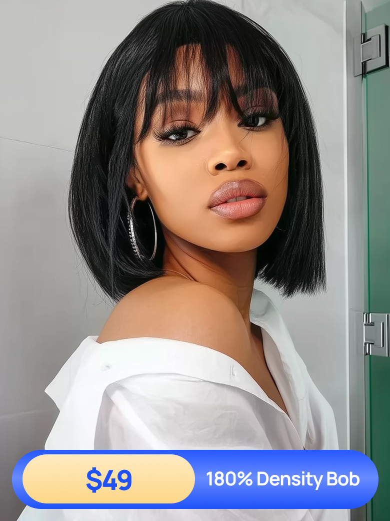 Low To $49| Nadula Flash Sale Bob & Yaki Straight With Bangs 150% Density Virgin Remy Hair Glueless Wig