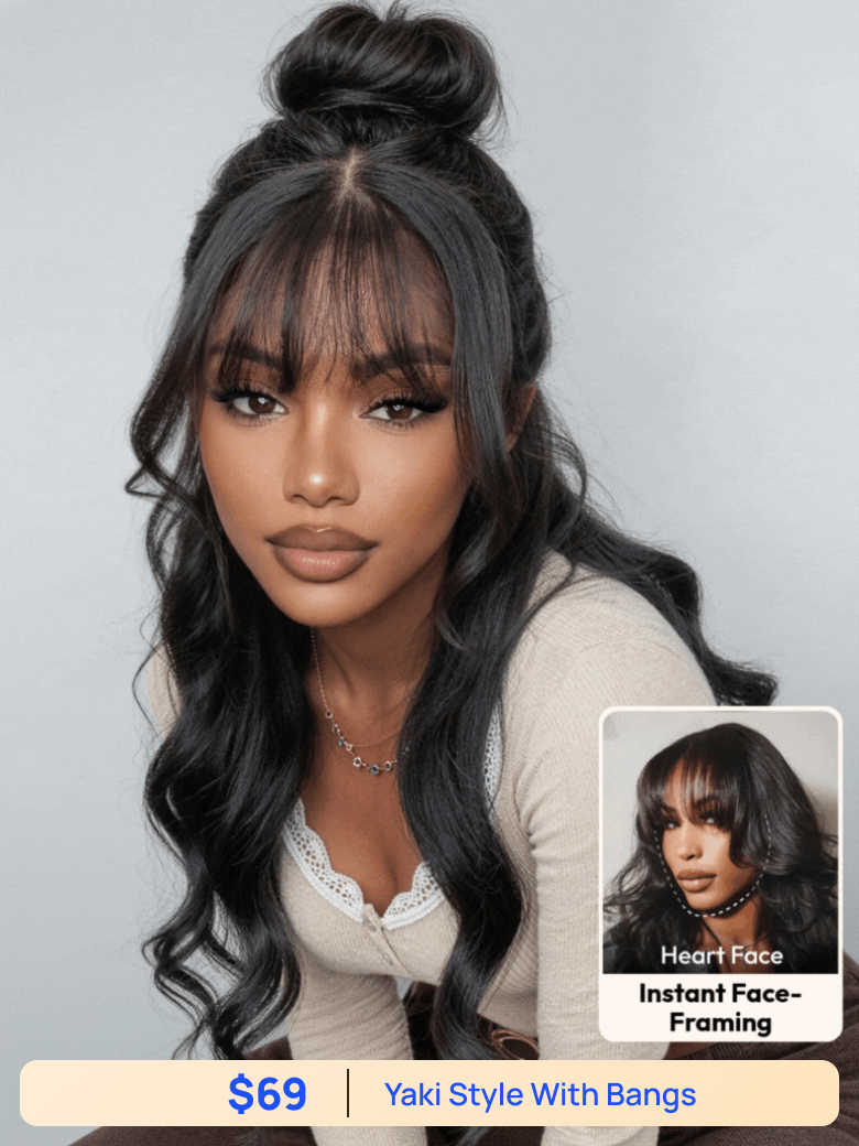 Low to $69 | Nadula Flash Sale Yaki Straight Layered Wig with Bangs And Life Saver V Part Glueless Human Hair Wigs