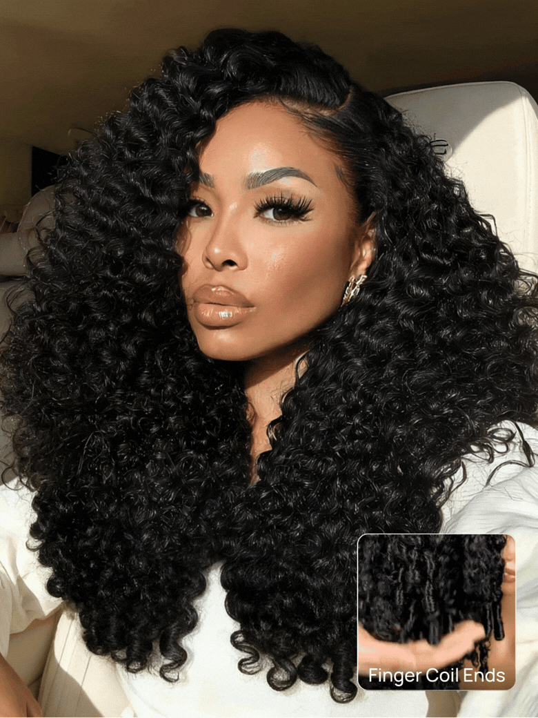 Nadula 13x4 Burmese Curly Wig With Finger Coils Ends Natural Texture & Bouncy Mixed Curl Pattern Put On And Go Glueless Wig