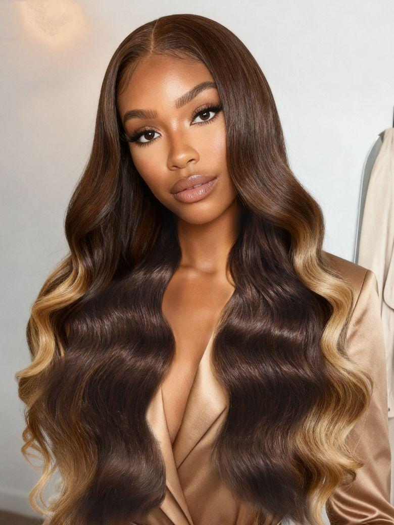 Nadula 7x5 Dark Chocolate Brown with Soft Golden Highlights Loose Wave Pre everything Put On And Go Wig with Drawstring