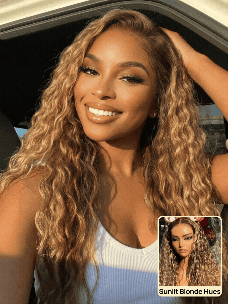 Nadula 13x4 Caramel Brown with Honey Blonde Highlights Wig No Slip Water Wave Put on and Go Lace Frontal Wig