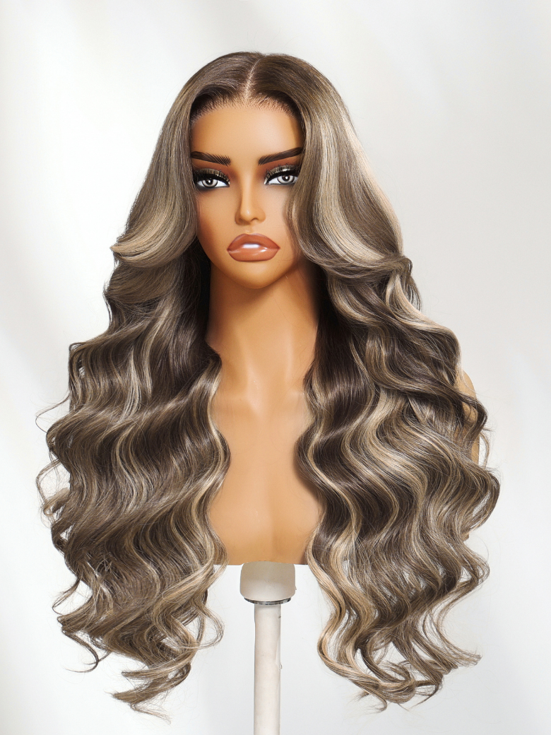 Nadula 13x4 Pre everything™ SDark Brown Ash Brown Balayage Wig with Platinum Blonde Highlights Glueless Human Hair Wig