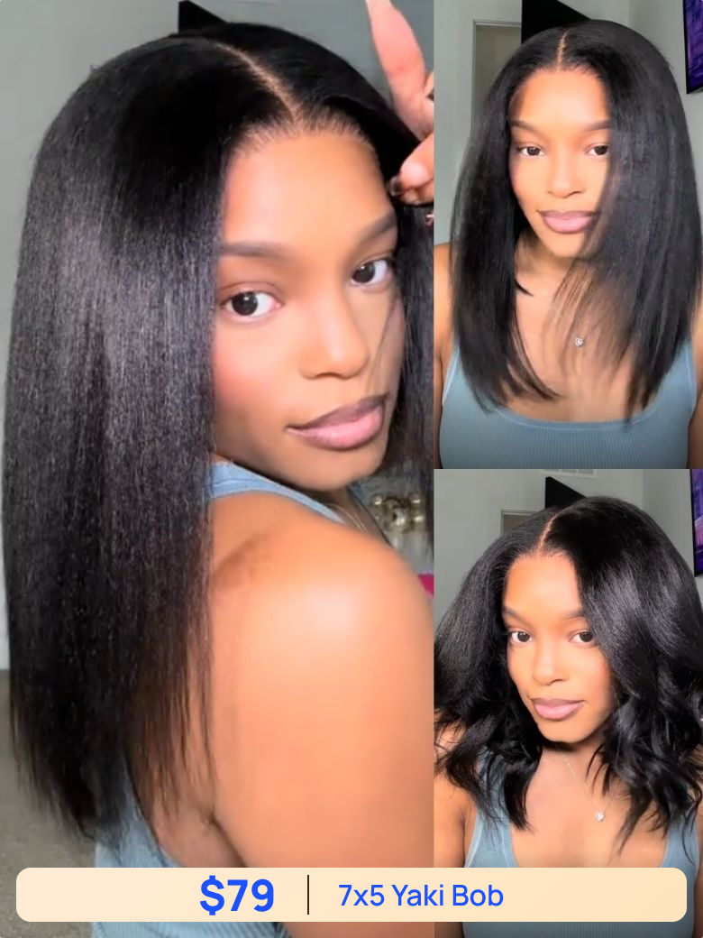 Nadula Flash Sale 7x5 Light Yaki Straight Wig Put on and Go Glueless Human Hair Wigs