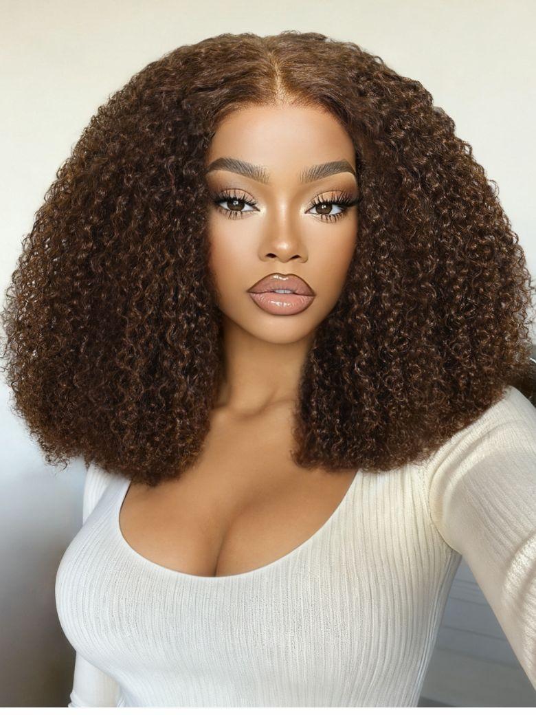 Nadula 13x4 Chocolate Brown Kinky Curly Transparent Lace Frontal Wig 180% Density Pre Everything Wig with Invisi Drawstring