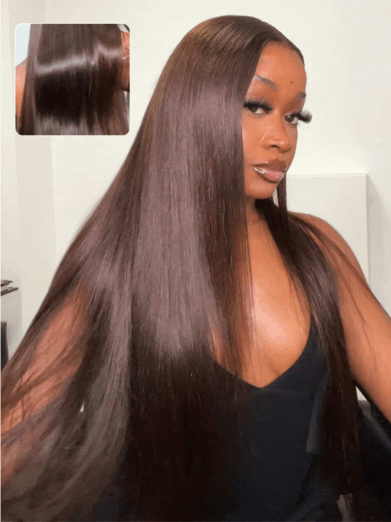 Nadula 4x4 Pre-Cut Lace Rich Chocolate Brown Yaki Straight Wig Put On and Go Glueless Human Hair Wig with Drawstring