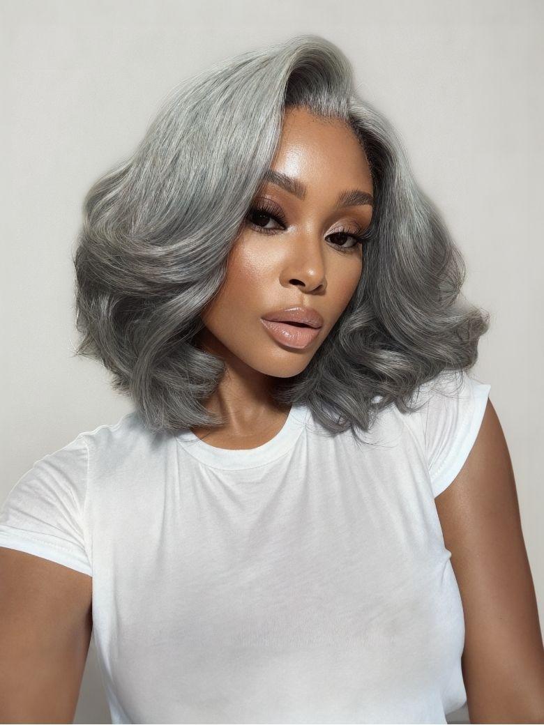 Nadula 6.5*1.5 Side Part Salt and Pepper Grey Layered Bob Pre-Cut Minimalist Lace Glueless Human Wig