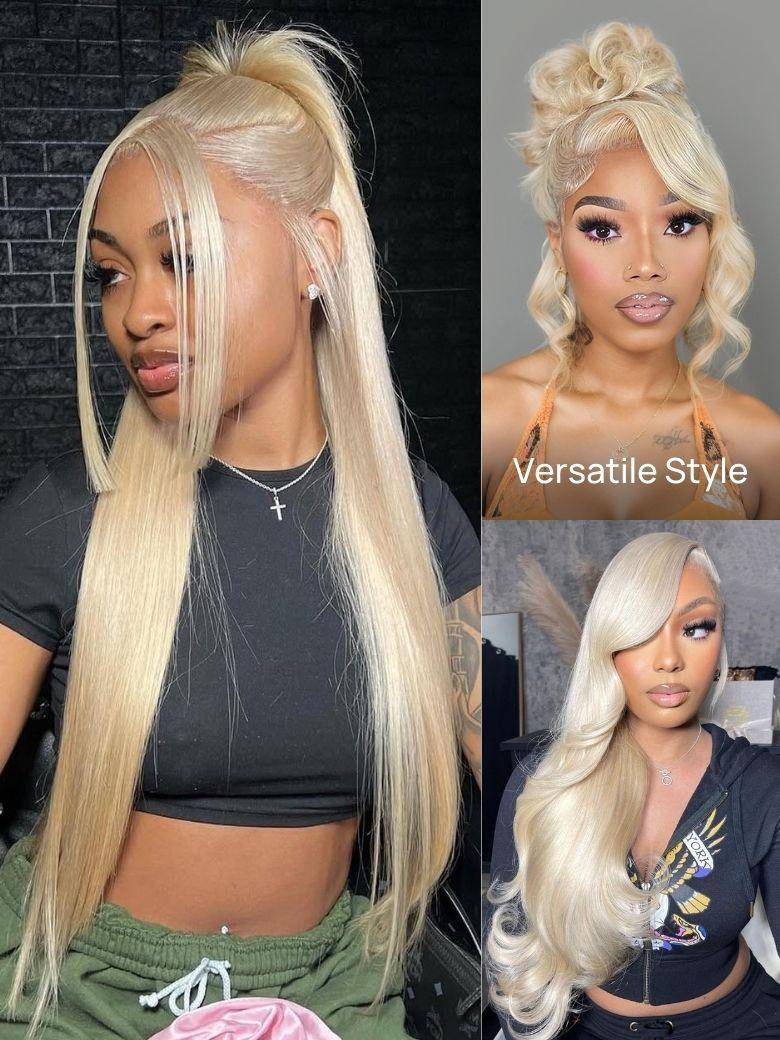 Nadula #613 Platinum Blonde Bone Straight Hair Full Lace Wig 100% Handmade Fully Breathable Cap Wig 180% Density