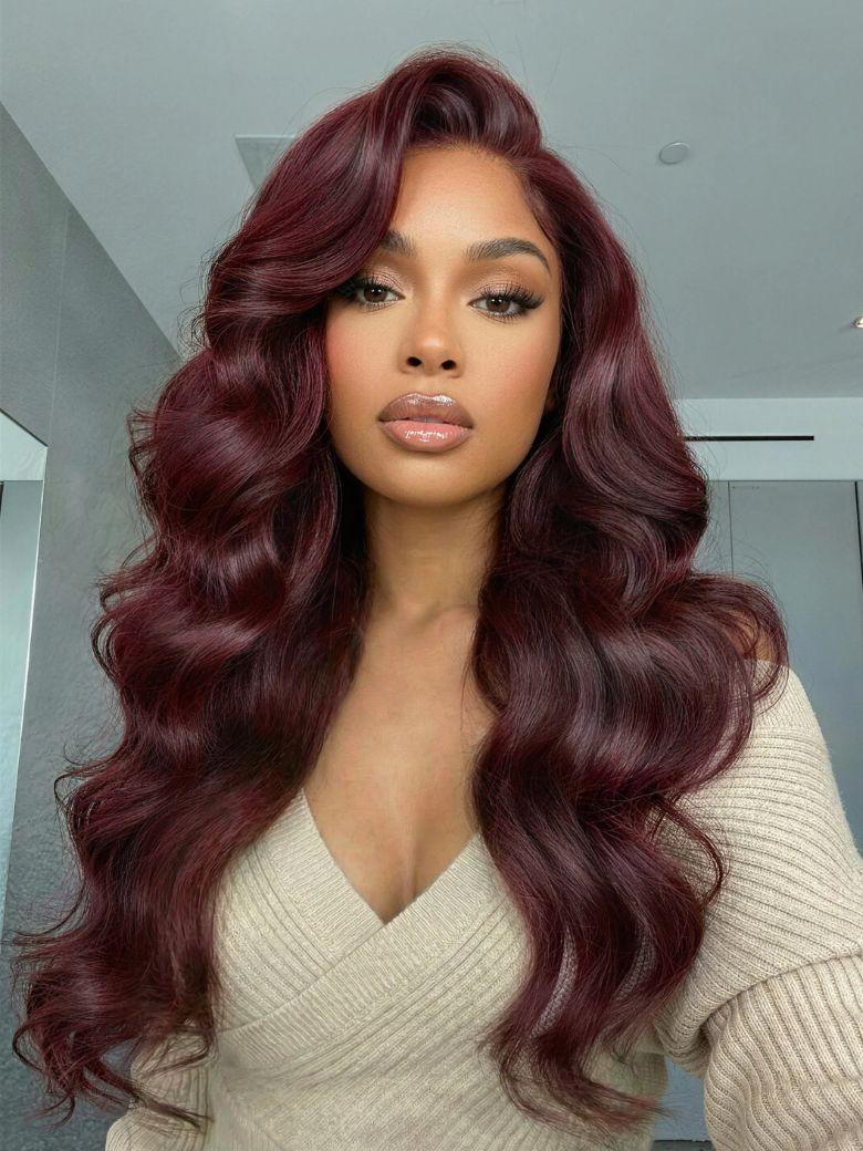 Nadula 7x5 Byebye Knots Wig Burgundy Brown Soft Barrel Curls Put On And Go Wig with Invisible Drawstring