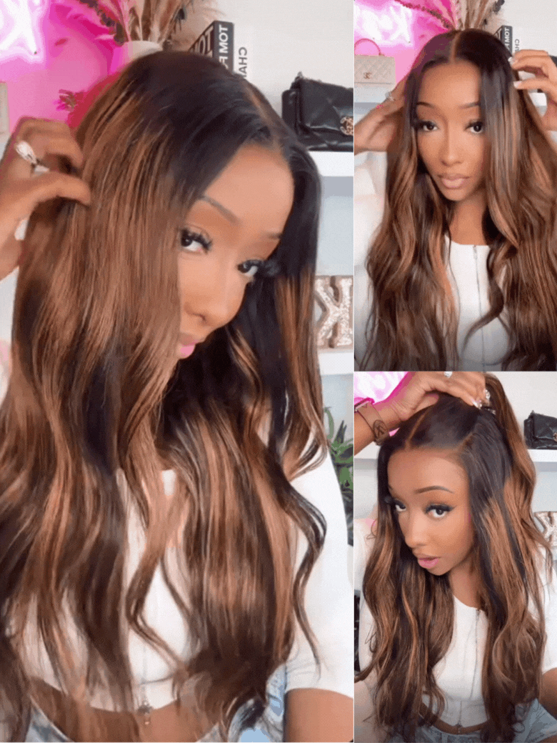 Nadula 7x5 Highlight Balayage Body Wave Lace Closure Shadow Root Human Hair Wig Pre Bleached with Invisible Drawstring