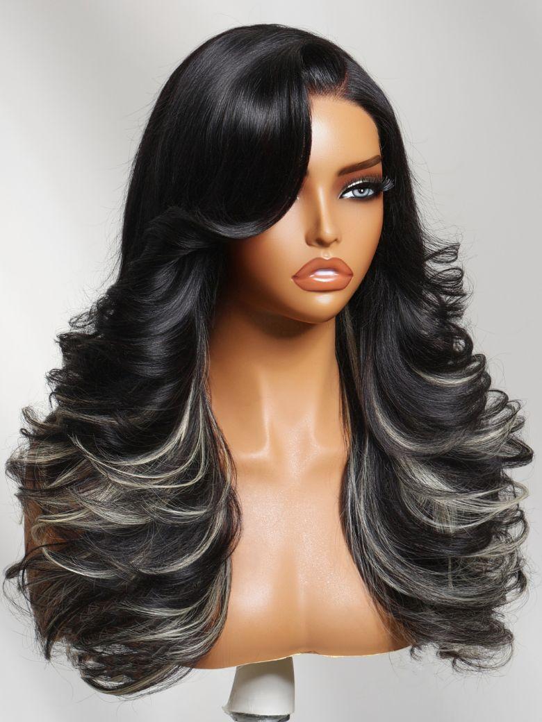Nadula 7x5 Invisible Knots Kash Doll Vibes Feathered Layers Nature Black With 613# Blonde Highlights Glueless Human Hair Wig