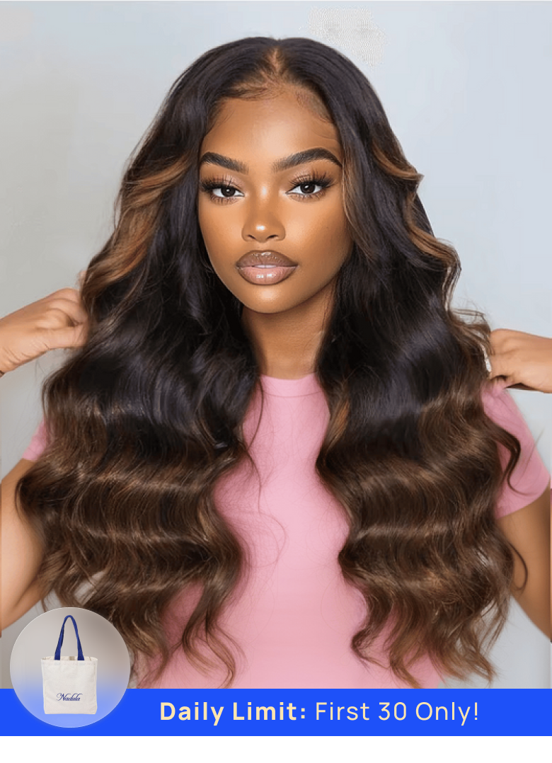 Nadula 7x5 Invisible Knots Loose Body Wave And Yaki Face-Framing Layers Wigs Black to Chestnut Brown Color
