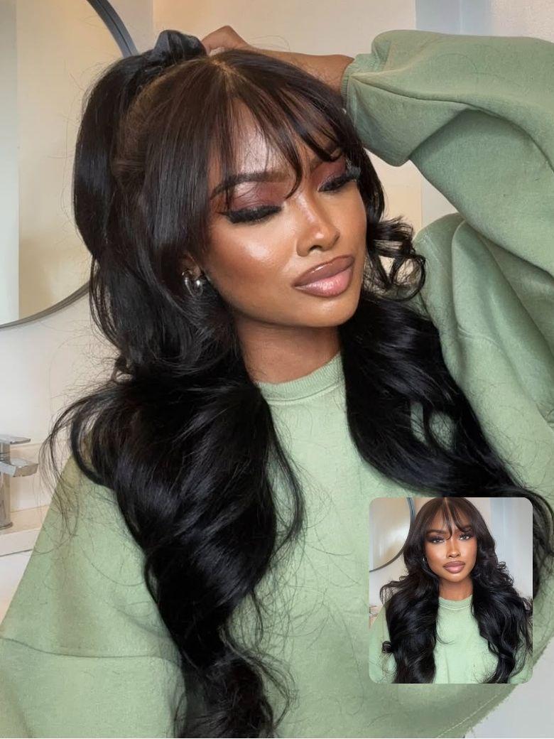 Nadula 7x5 Bye Bye Knots and 13x4 3D Body Wave Lace Frontal Wig with Bangs Pre everything Put on and Go Human Hair Wigs
