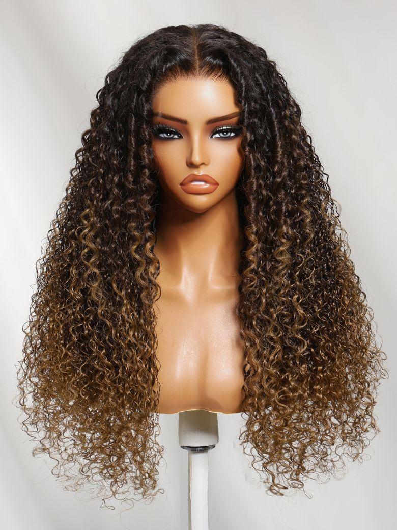 Nadula 7x5 No Slip Wig Curly Hair Dark Brown to Caramel Ombré with Dark Roots Finger Coil Lace Closure Glueless Human Hair Wigs