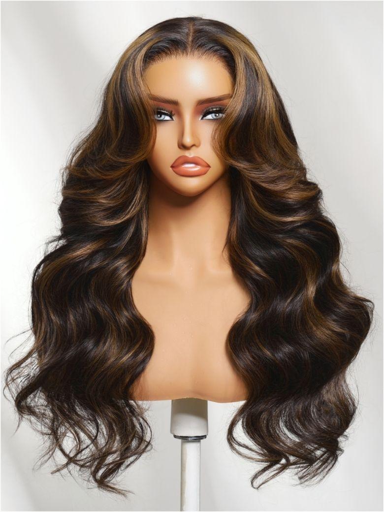 Nadula 7x5 No Slip Wig Golden Brown Highlight Wig Body Wave Lace Closure Glueless Human Wig with Drawstring