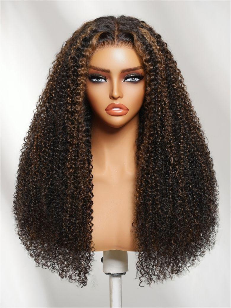 Nadula 7x5 No Slip Wig Golden Brown Highlight Wig Kinky Curly Lace Closure Glueless Human Wig with Drawstring