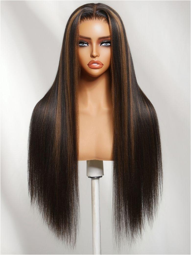 Nadula 7x5 No Slip Wig Golden Brown Highlight Wig Yaki Straight Lace Closure Glueless Human Wig with Drawstring
