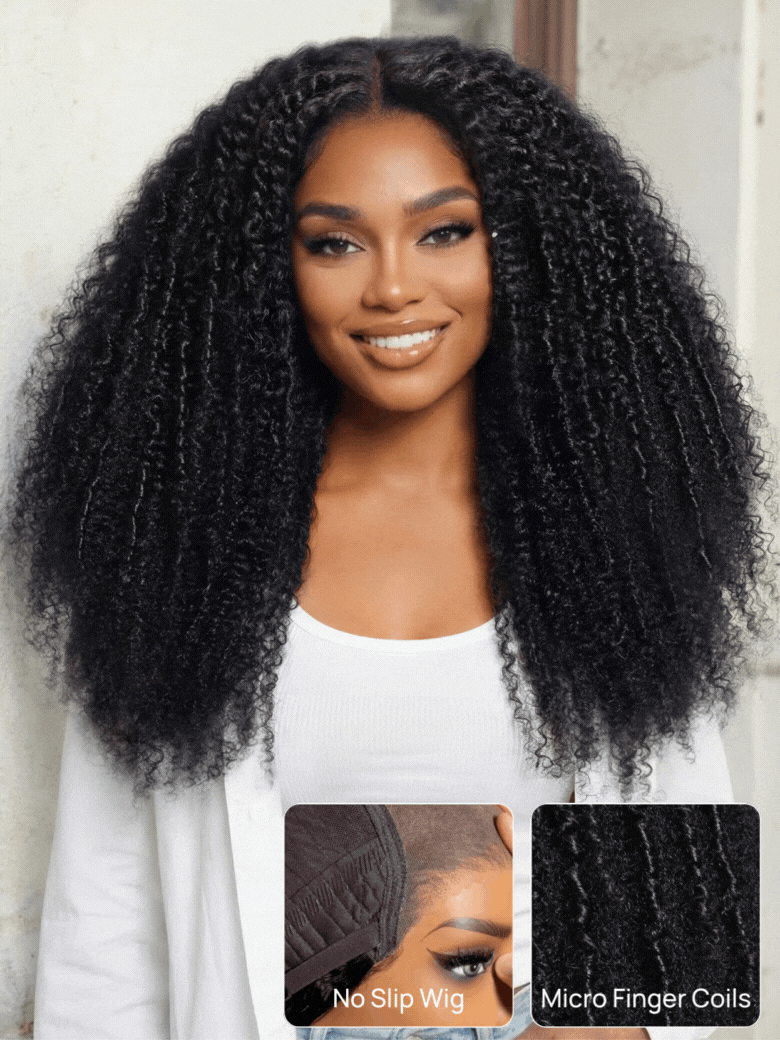 Nadula 7x5 No Slip Wig Micro Twist-Out Style Finger Coils On Kinky Curls Afro Textured Wig Put On And Go Glueless Wig