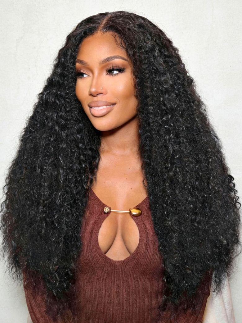 Nadula 7x5 No Slip Wig Mixed Curls Three-Curl Blended Texture Natural Looking Put On And Go Glueless Wig
