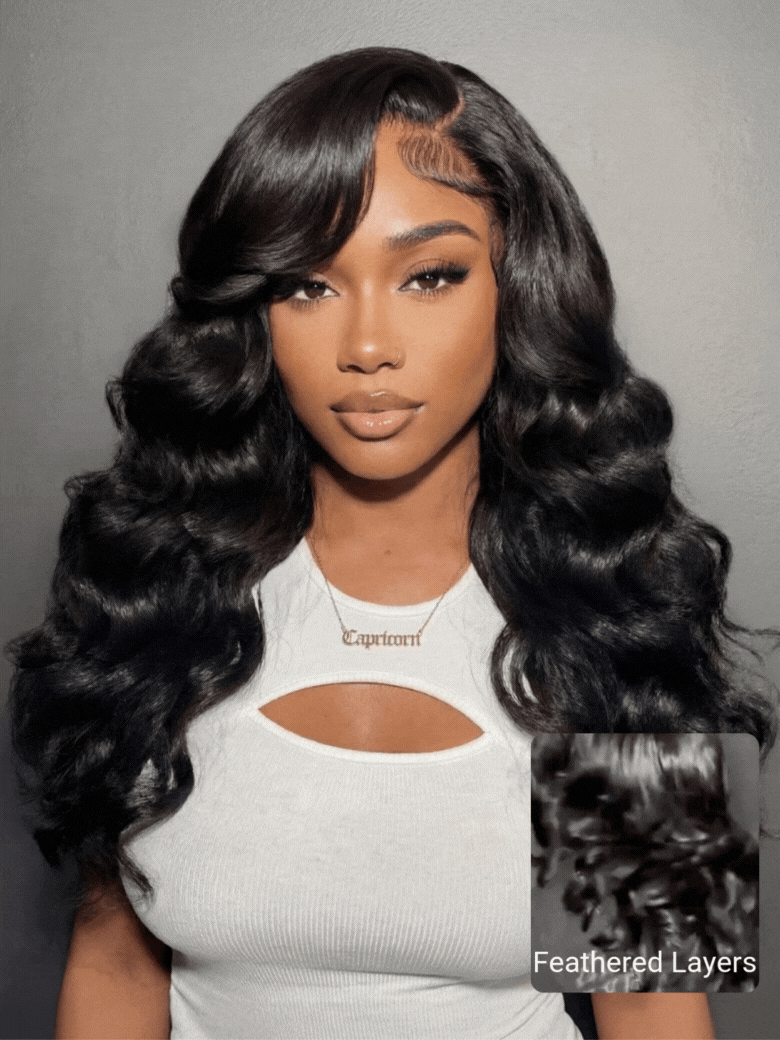Nadula 7x5 No Slip Wig Retro Brina Cut with Feathered Layers Side Part Bang 200% Density Lace Wig Put On And Go Glueless Wig