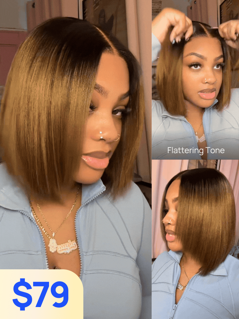 Nadula $79 Flash Sale 7x5 Chestnut Brown Ombre Yaki Bob Put On and Go Wig Glueless Human Hair Wigs with Invisi Drawstring
