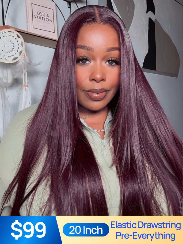 Nadula Flash Sale 13x4 Pre-everything Lace Frontal Burgundy Plum Layer Cut Straight Put on and Go Wigs