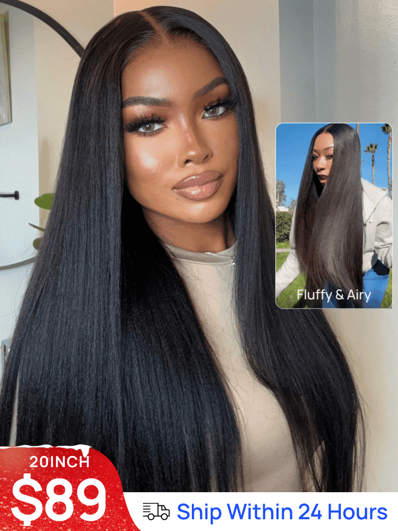 Nadula Flash Sale 13x4 and 7x5 Yaki Straight Wigs Put On and Go Human Hair Wig 150%-180% Density
