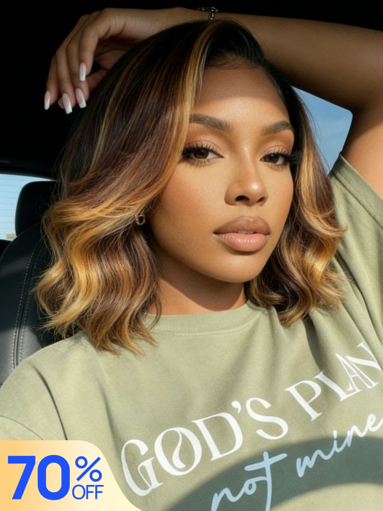 Nadula Flash Sale13x4 Lace Front 1B/30 Dark Root with Warm Brown Highlights Soft Barrel Curls French Bob Style Put On And Go Wig