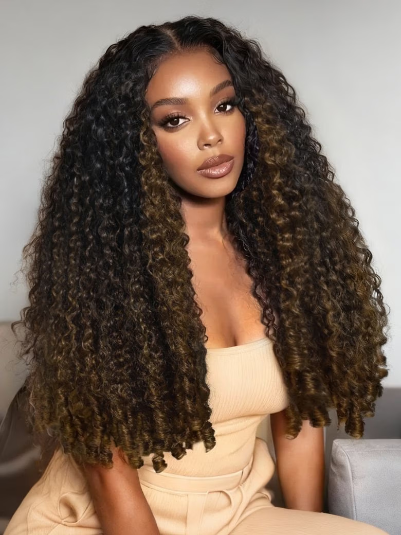 Nadula Clearance Sale V Part Wig Chestnut Brown Ombre Burmese Curly With Finger Coil Ends Wig Put On and Go Human Hair Wigs