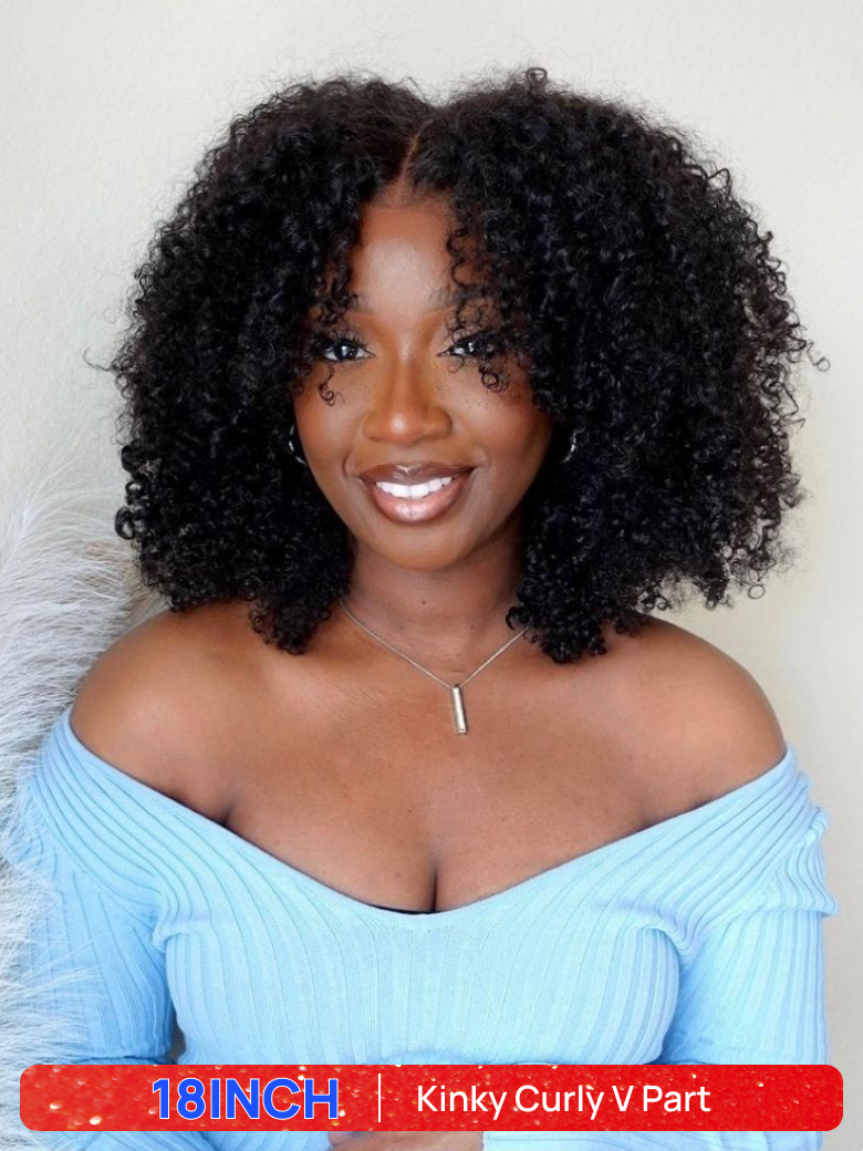 BOGO Free | Nadula18Inch V Part Kinky Curly Hair Wig Beginner Friendly
