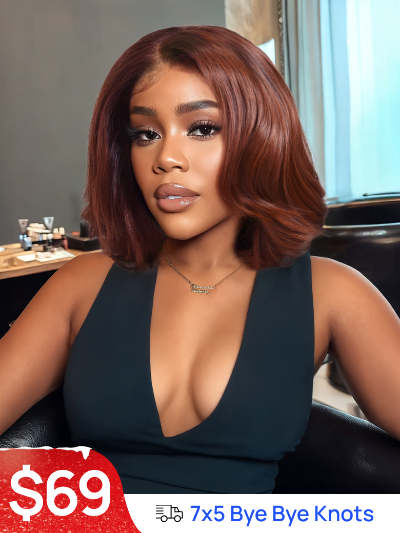 Nadula Flash Sale 7x5 Byebye Knots Lace Closure Reddish Brown Colored Body Wave Put On And Go Human Hair Wigs