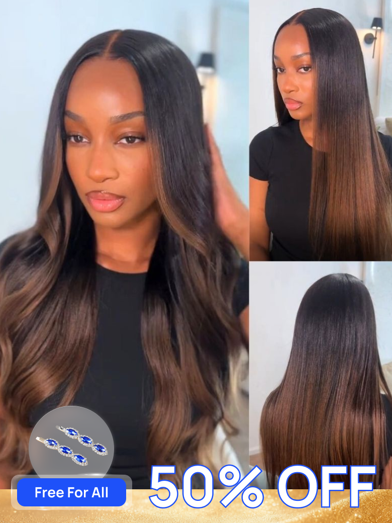 Nadula Flash Sale 7x5 Chestnut Brown Ombre Yaki Straight Put On and Go Wig Bye Bye Knots Glueless Human Hair Wigs