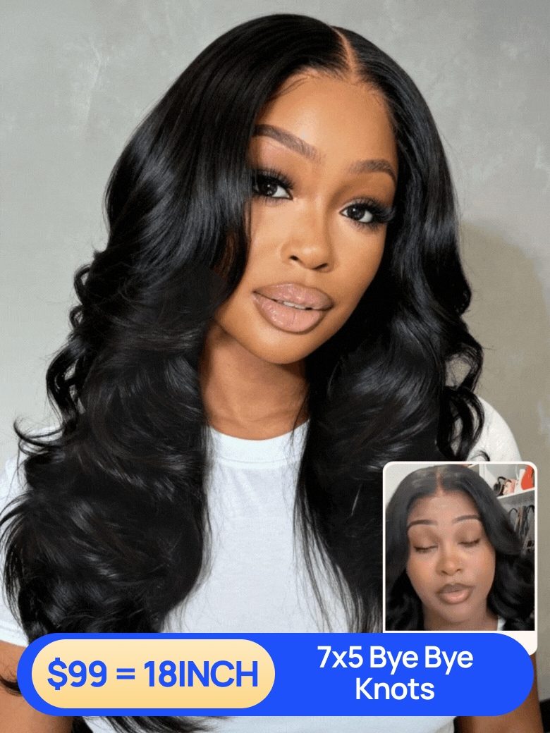 $99=18inch | Nadula Flash Sale 7x5 Byebye Knots Put On and Go Body Wave Wig Pre Bleached Invisible Knots Glueless Wigs