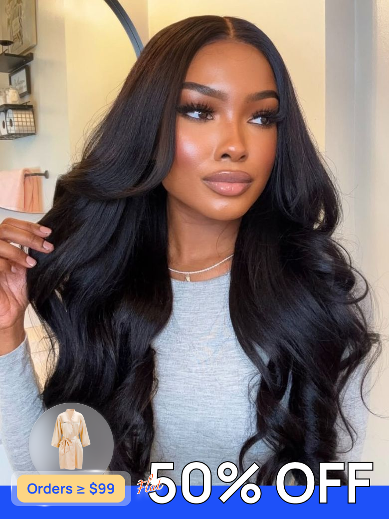 Nadula Flash Sale 7x5 Yaki Wavy Wig Soft Flip Out Bang Curl Style Put on and Go Human Hair Wigs