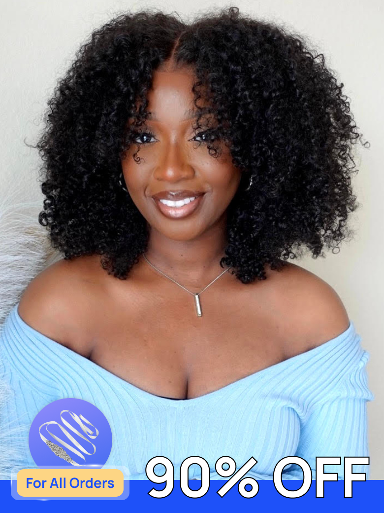 Nadula Flash Sale Kinky Curly V Part Wig And 7x5 Byebye Knots Closure Wig Put On And Go Human Hair Wigs