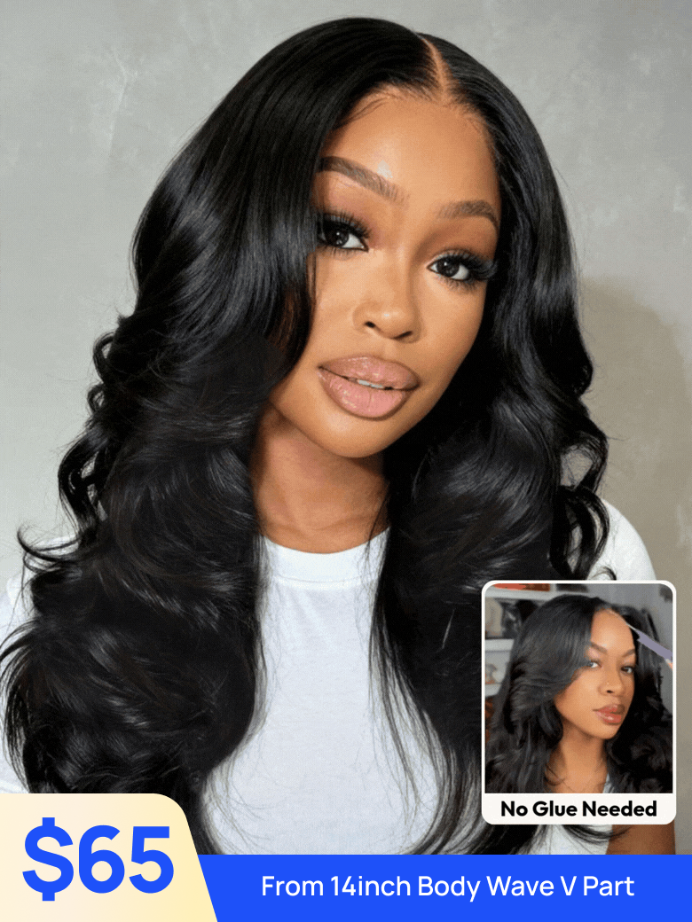 Nadula Flash Sale Body Wave Styles Gluless V Part Wig 7x5 Bye Bye Knots Put On And Go Wigs