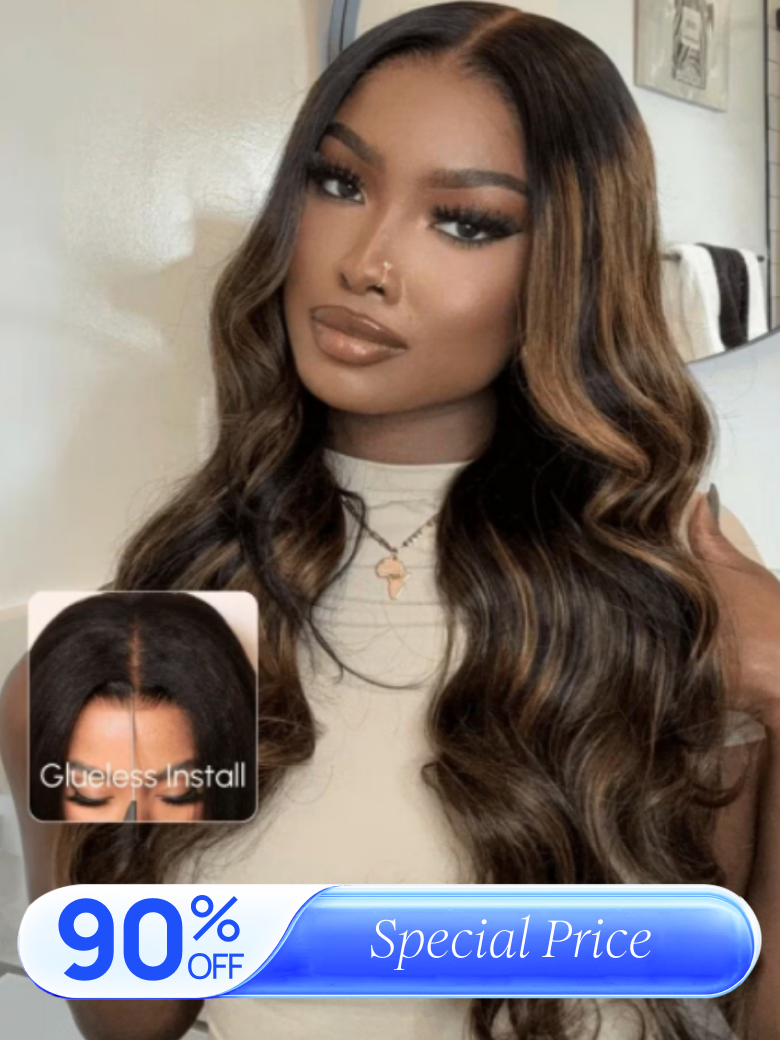 Nadula Flash Sale Brown Highlight Body Wave 7x5 Byebye Knots Pre-Bleached Human Hair Wigs Put On And Go