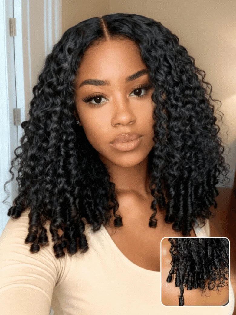 Nadula Flash Sale Burmese Curly with Finger Coil Ends Wig V Part And 7x5 Lace Closure Put On and Go Human Hair Wigs